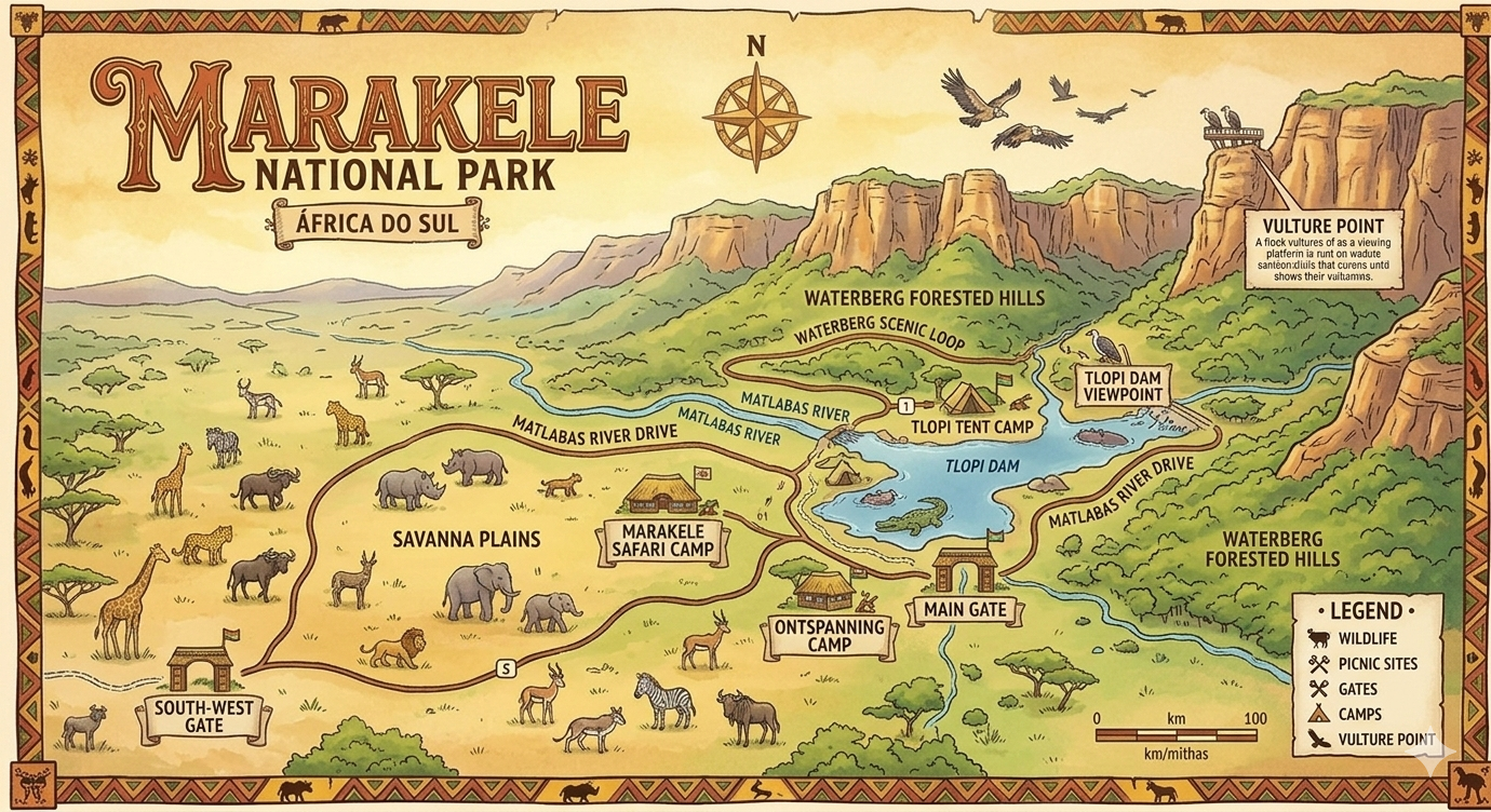 O Marakele National Park é um dos tesouros naturais da África do Sul, localizado na província de Limpopo, a cerca de 200 km ao norte de Pretoria. O parque é famoso por sua rica biodiversidade, paisagens deslumbrantes e compromisso com a conservação da vida selvagem.