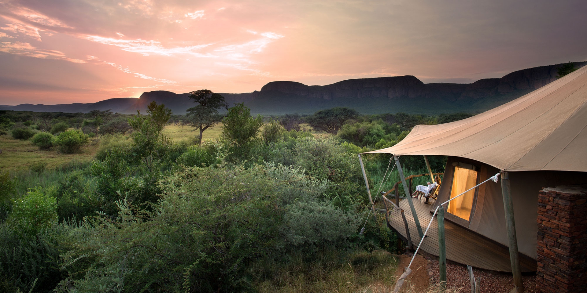 - Tlopi Tented Camp: Tendas mobiliadas às margens de uma represa. É muito procurado, então solicite reserve com antecedência.